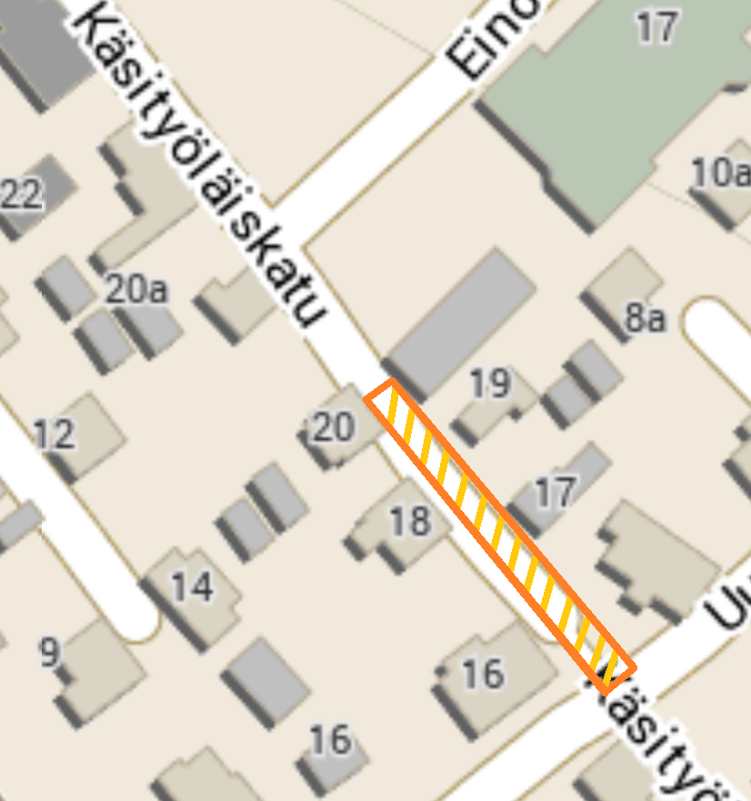 Käsityöläiskadun ahtaiden tilojen vuoksi katu on työmaan kohdalta osittain suljettuna kaikelta liikenteeltä! Kiinteistön omistajia pyydetään mahdollisuuksien mukaan jättämään autoja esim. palokunnan aukiolle. Vesijohtotöiden aikana tulee alueelle vesikatko, josta tiedotetaan erikseen.